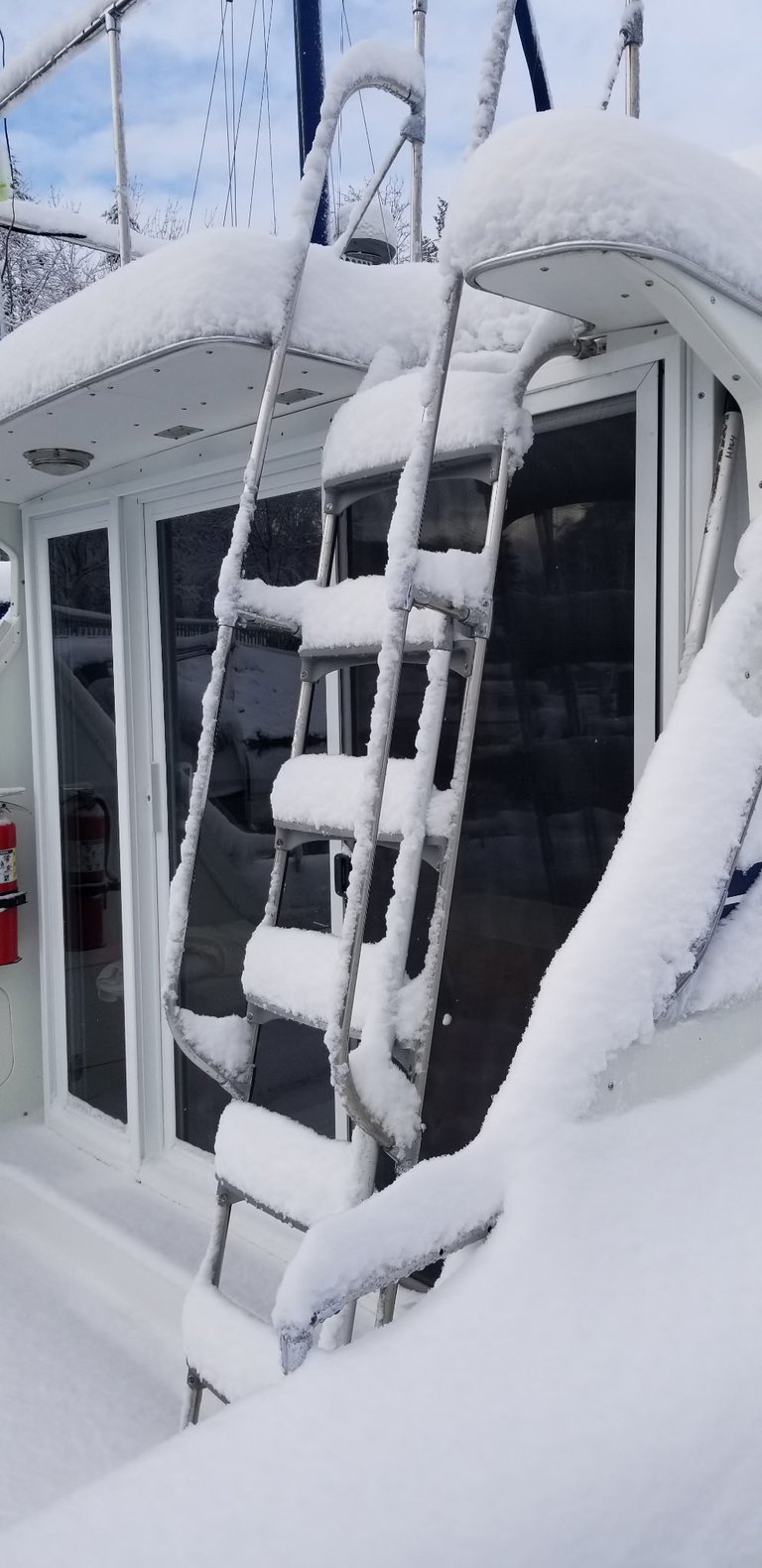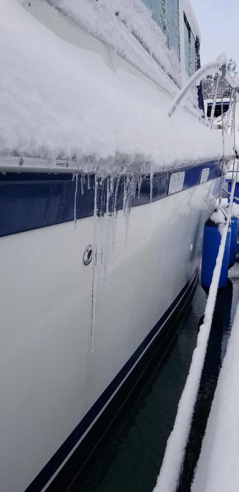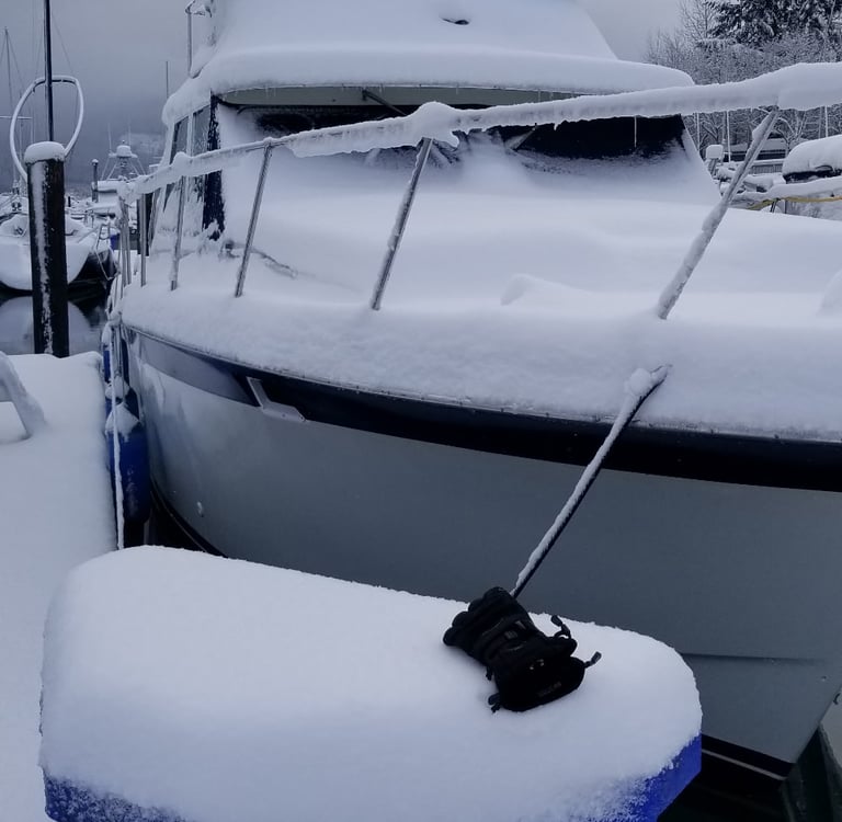 Snow is heavier than it looks. Enough of it can push scuppers underwater, strain supports, or collapse cockpit covers like a cheap lawn chair. I’ve seen covered marinas collapse from the load and take perfectly good boats down with them.